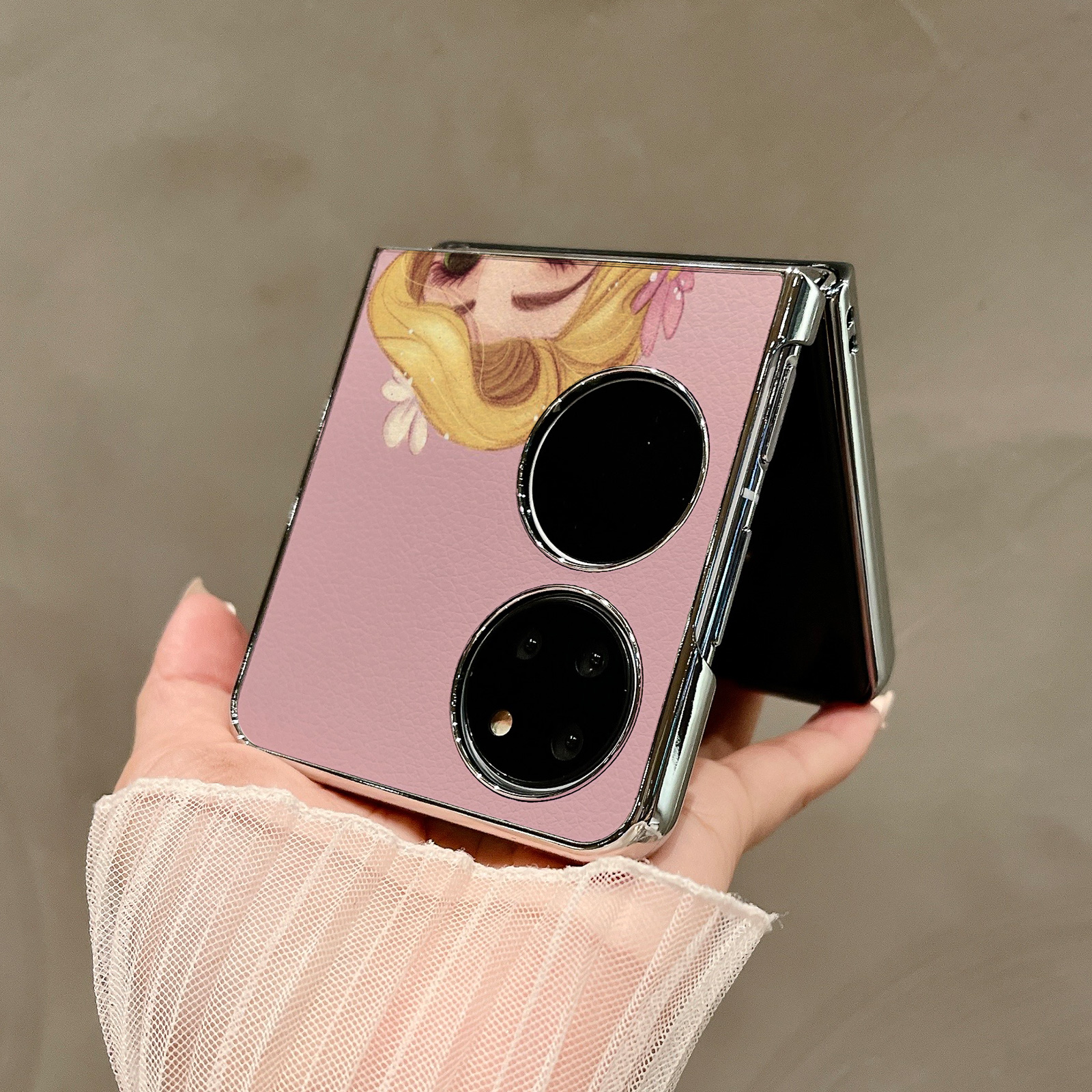 热瓜适用华为P50pocket手机壳Pocket2折叠屏保护套电镀粉色美少女孩创意银边新款pockets创意高档视窗全包套