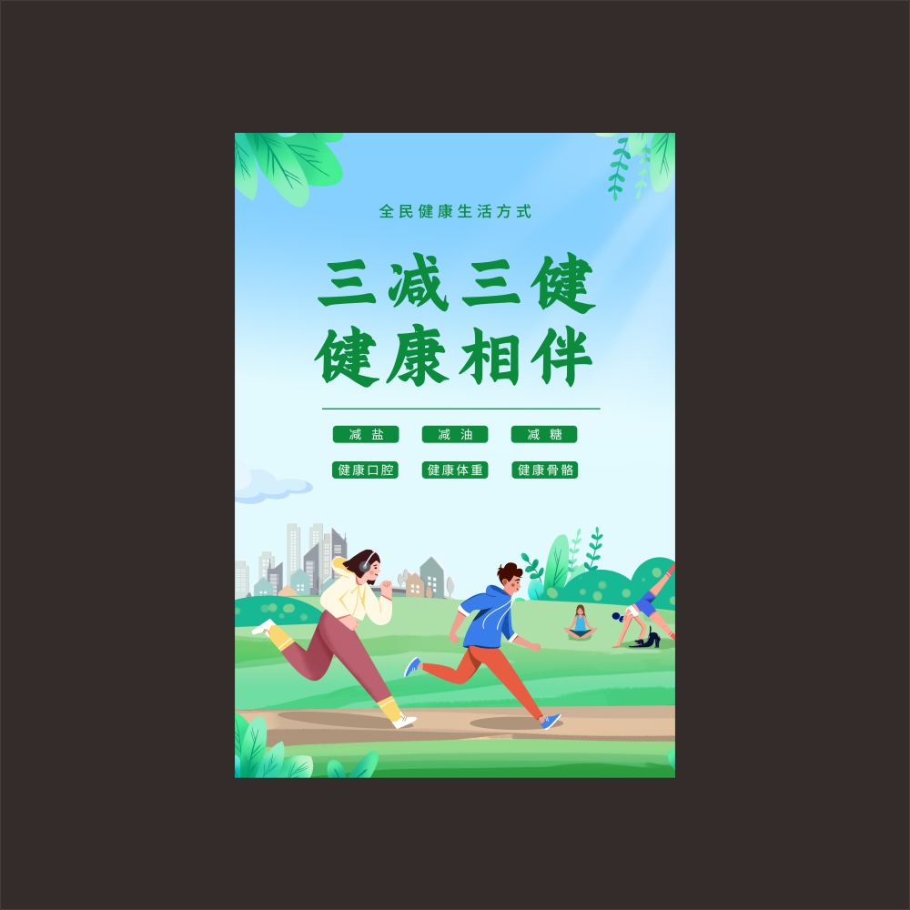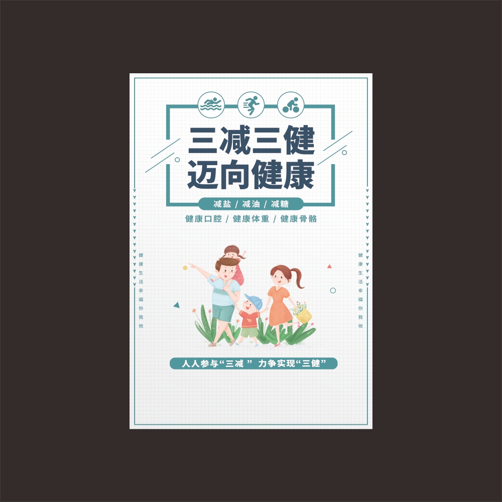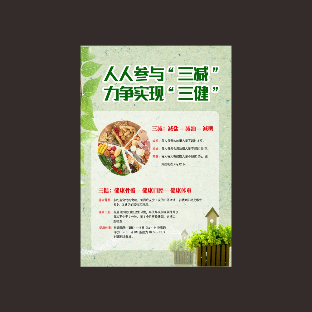 三减三健宣传海报控油减盐墙贴合理膳食海报健康四大基石墙贴画全民健康生活方式挂图展板减盐减糖减油宣传画