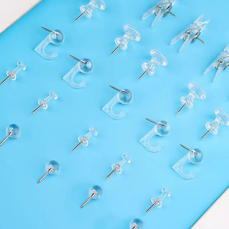 125/盒多功能创意透明图钉夹子套装玫瑰金圆球钉软木照片墙大头钉