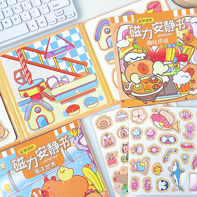 卡皮巴拉磁力安静书男孩卡通diy换装场景磁性贴纸儿童闯关粘贴diy益智玩具可爱女孩反复玩玩磁吸贴纸换装玩具