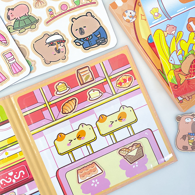 萌崽新款果冻贴纸安静书卡皮巴拉女孩免裁剪diy材料包儿童益智玩具
