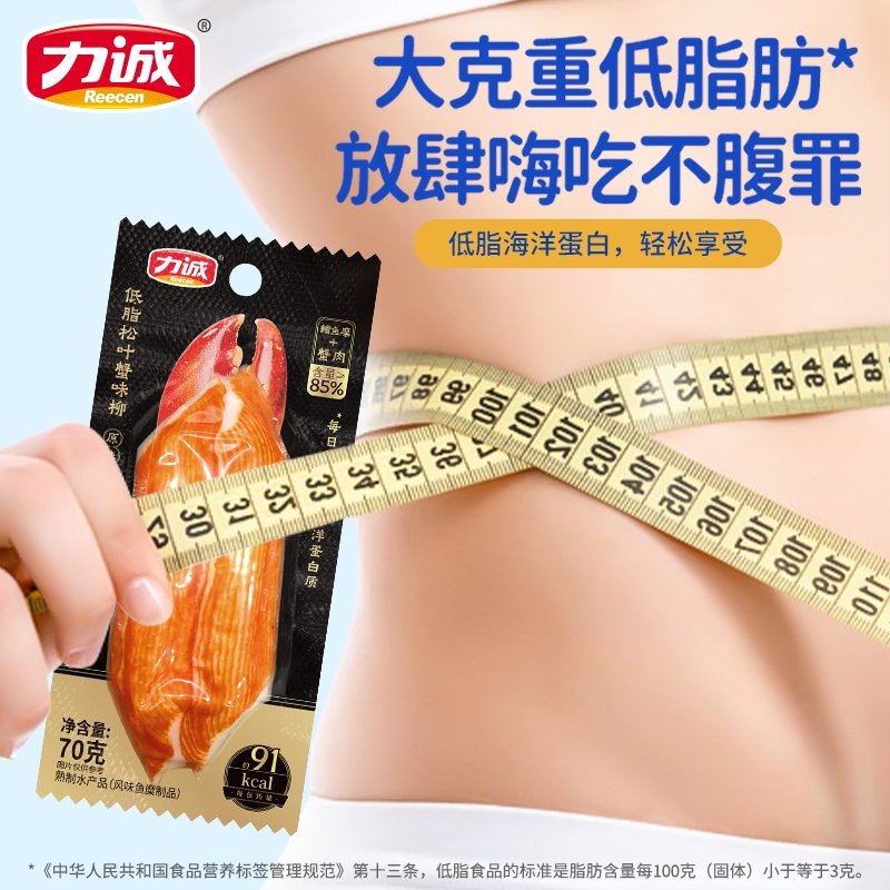 力诚松叶蟹柳70g低脂肪手撕蟹肉棒即食零食小吃控卡蟹味早餐代餐