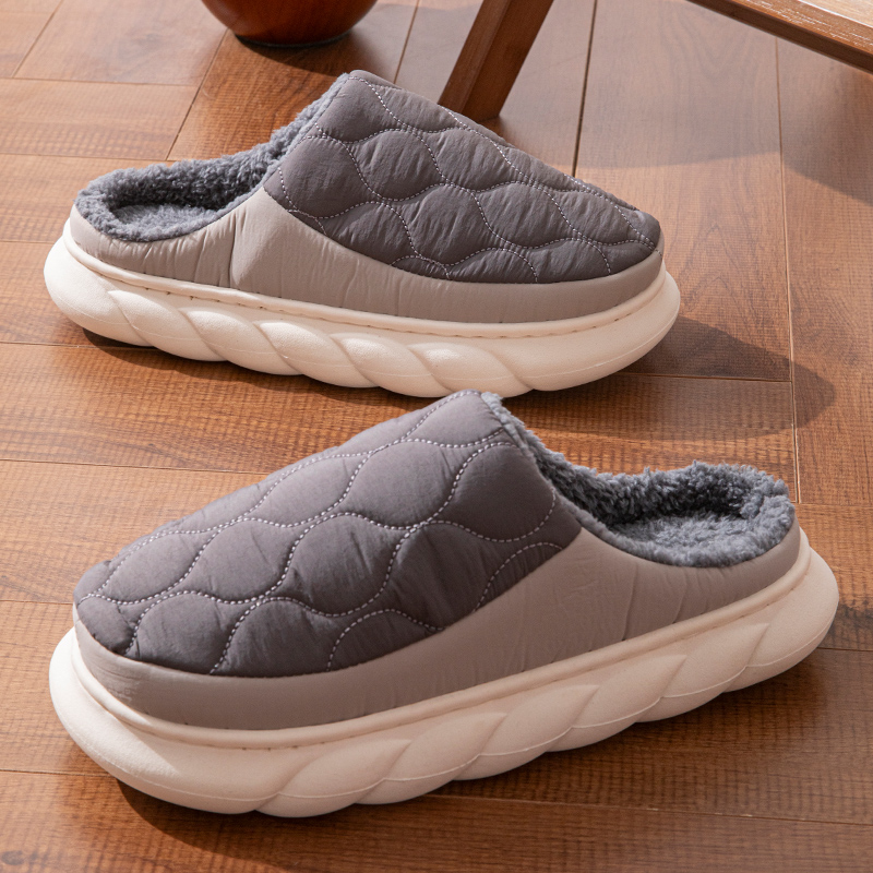 羽绒布保暖棉拖鞋防寒防臭防滑防水家居外出厚底踩屎感秋冬季男款