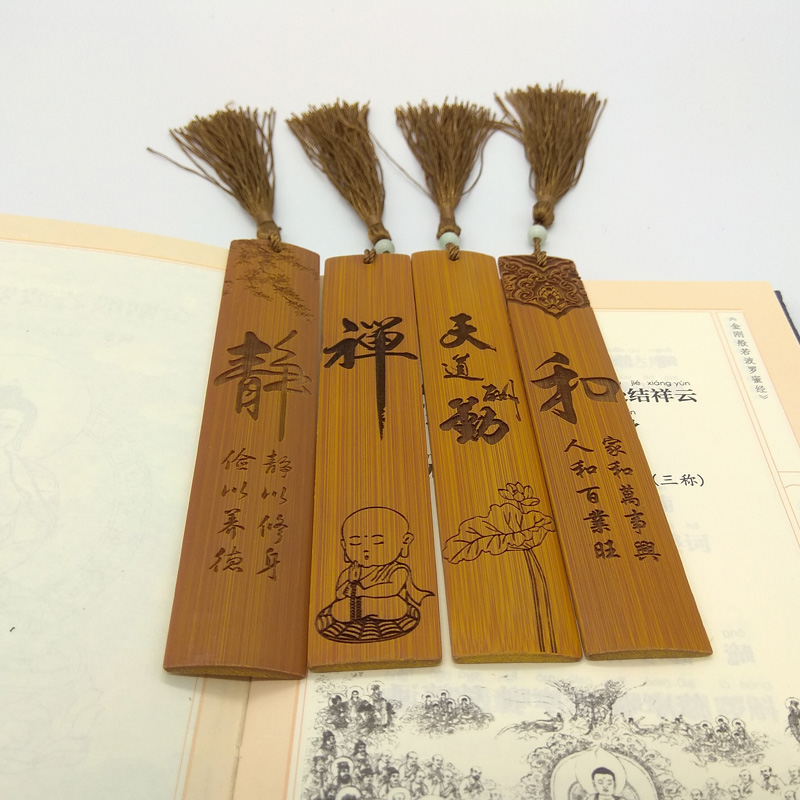 佛心禅意竹书签复古书签木质 复古文艺流苏中国风logo送朋友礼物