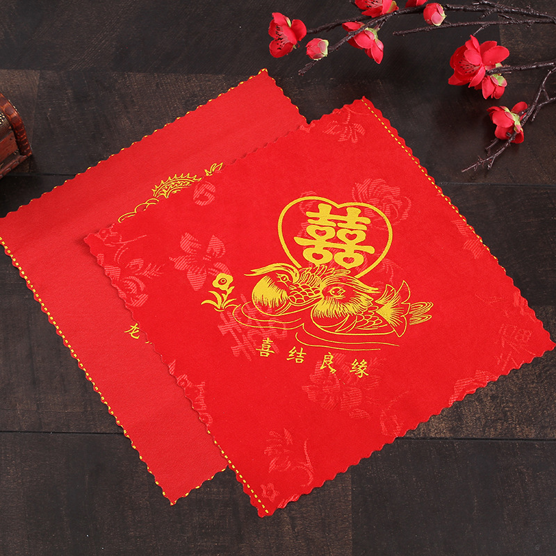结婚换喜手绢顶针红色小手帕婚礼用的中式扔喜帕女方陪嫁婚庆用品