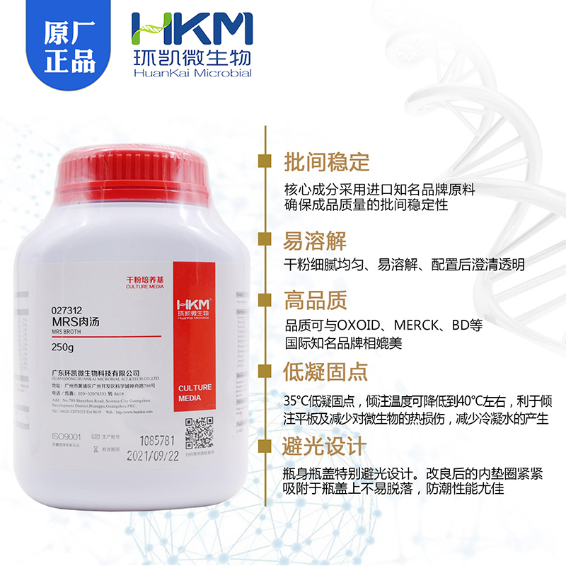 MRS肉汤培养基 用于乳酸菌的培养 250g/瓶 027312 环凯 正品包邮