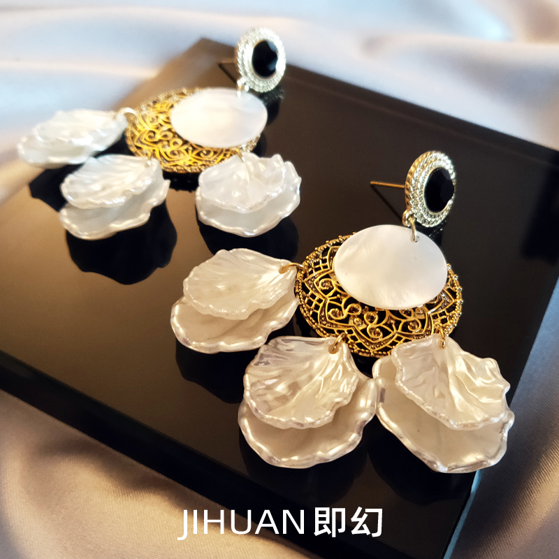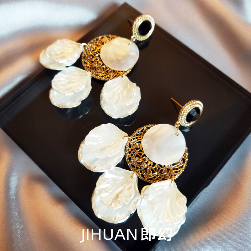 即幻波西米亚复古风气质贝壳耳环法式长款流苏高级感大气夸张耳饰