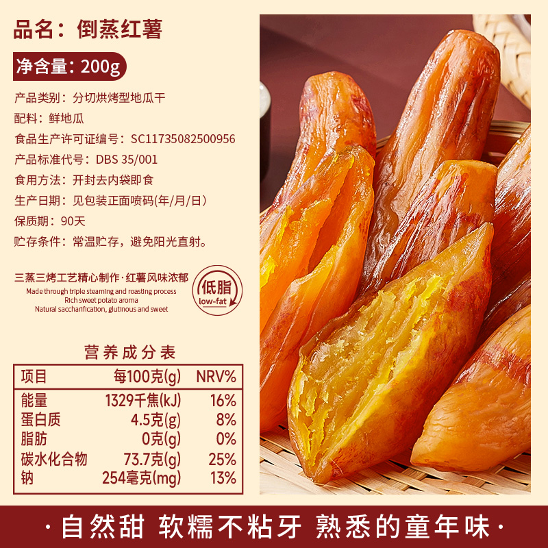 倒蒸烤红薯干软糯番薯干农家原味地瓜干0低脂小零食无糖精油添加