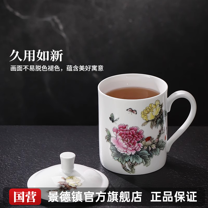 景德镇官方陶瓷中式茶杯对杯轻奢家用办公室大容量水杯马克杯茶具