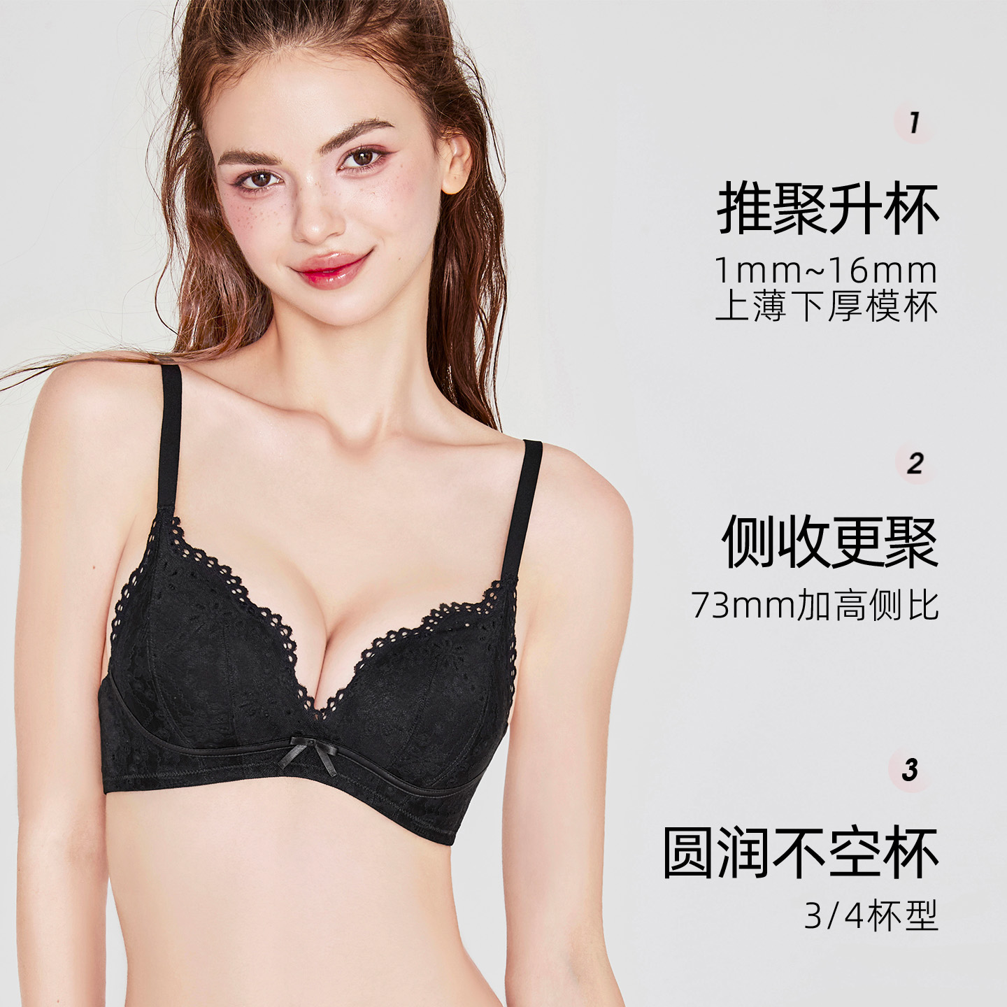 洋奢无钢圈薄款内衣大小胸聚拢收副乳防下垂无痕运动美背防震文胸