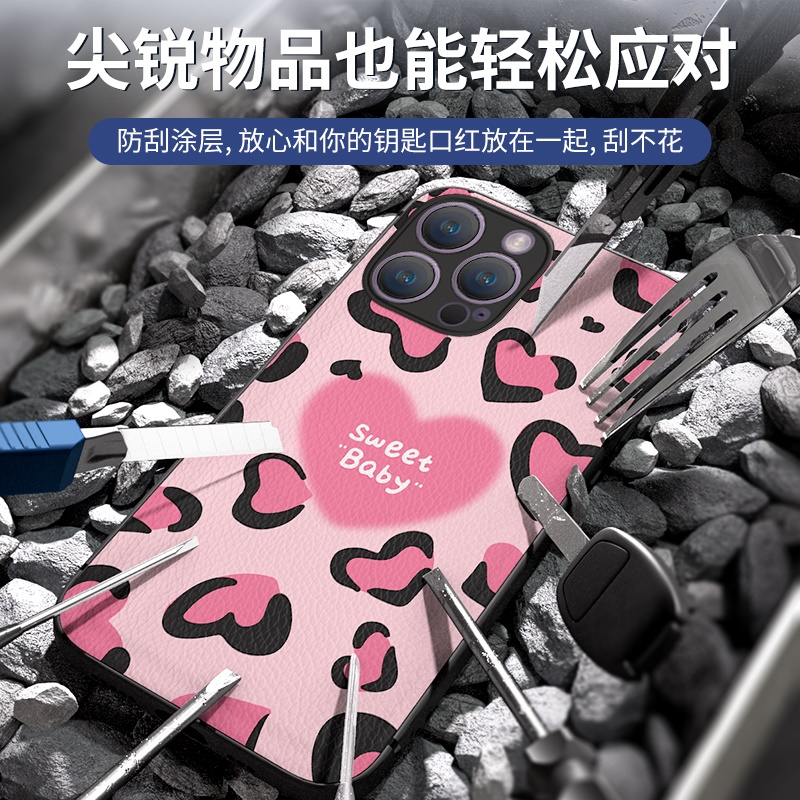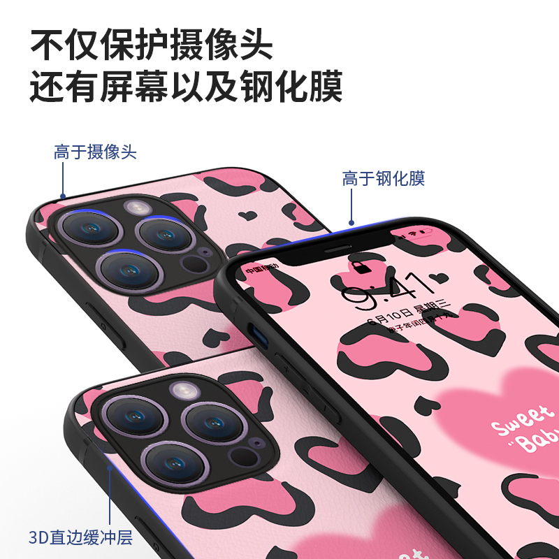 爱心豹纹iphone14promax手机壳适用苹果15Pro新款17的plus硅胶16超薄xs防摔高级感粉色全包小羊皮11少女爆款