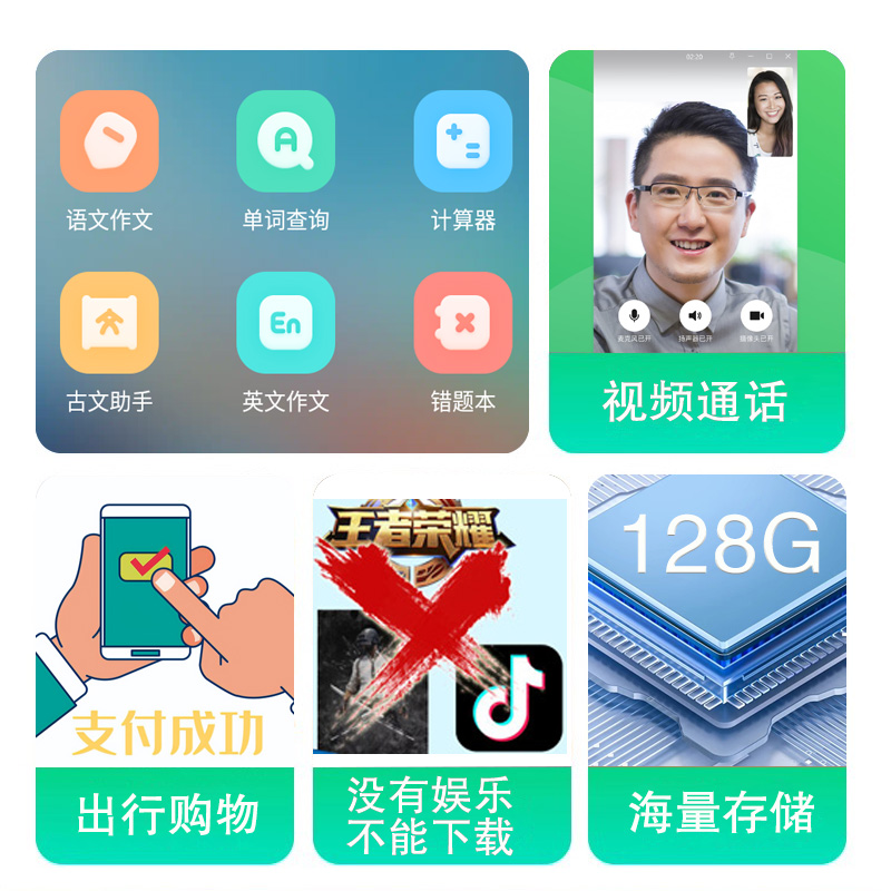 青少年戒网专用学生手机128G无游戏触屏手写微信不能下载半智能机
