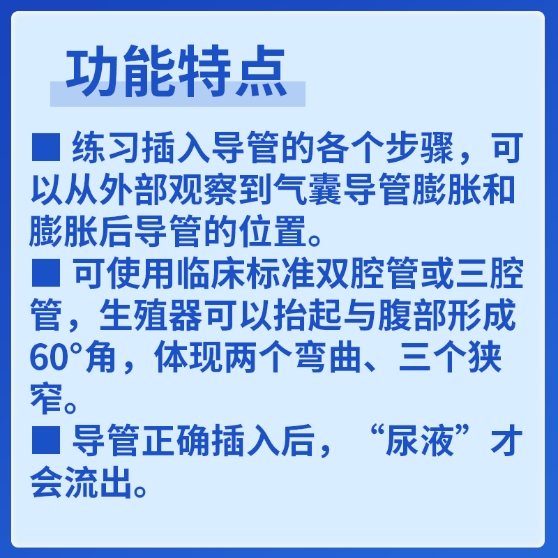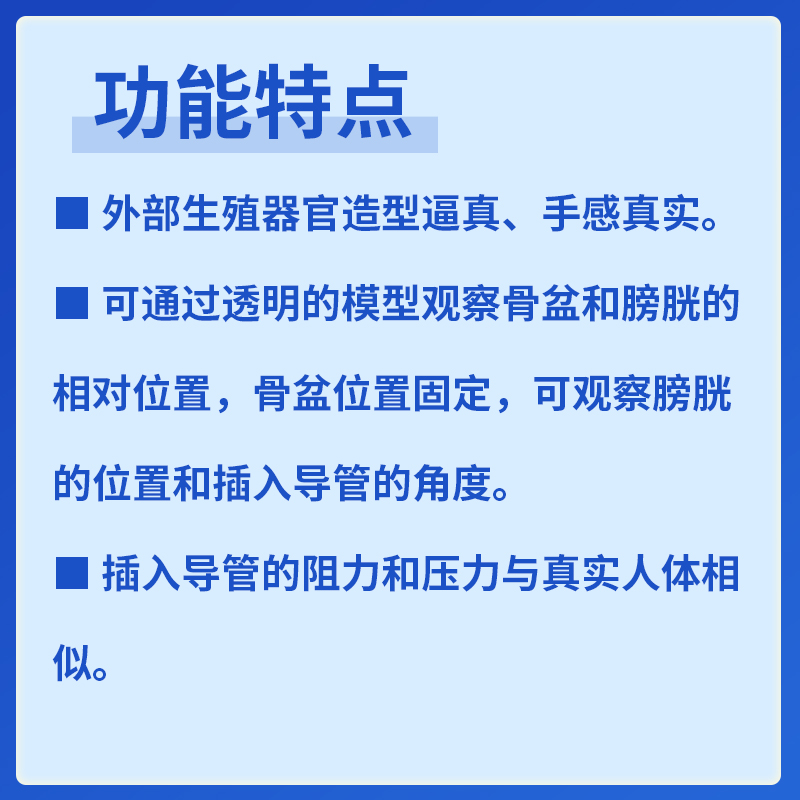 透明男性导尿模型真实阻力感骨盆膀胱可视气囊导管膨胀动态双弯三窄模拟双腔三腔管60°角尿液流出医学教具