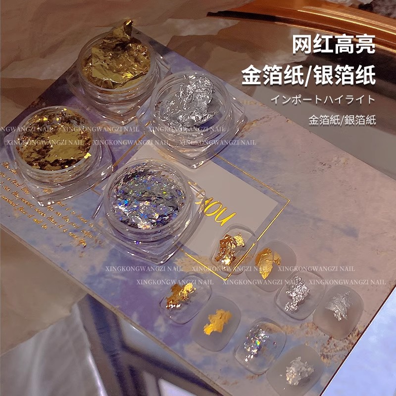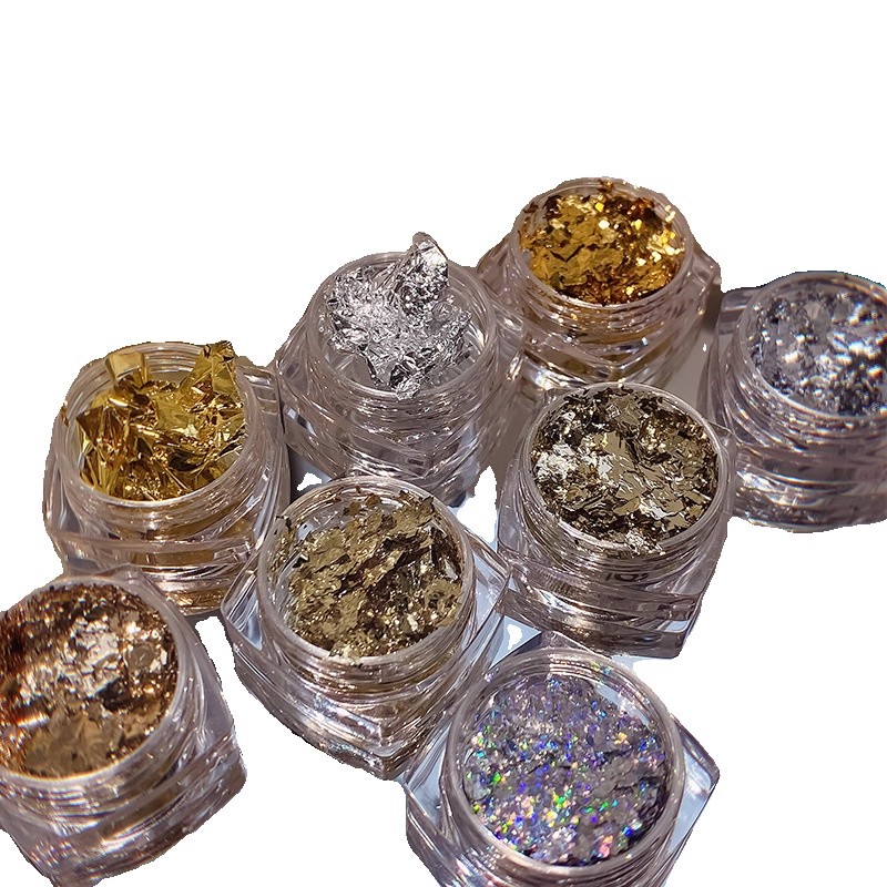 美甲饰品亮片浅金色闪粉不规则香槟小亮片指甲装饰品金箔银箔箔纸