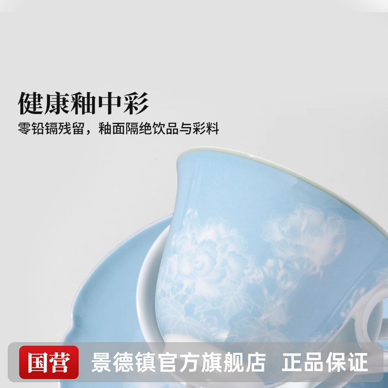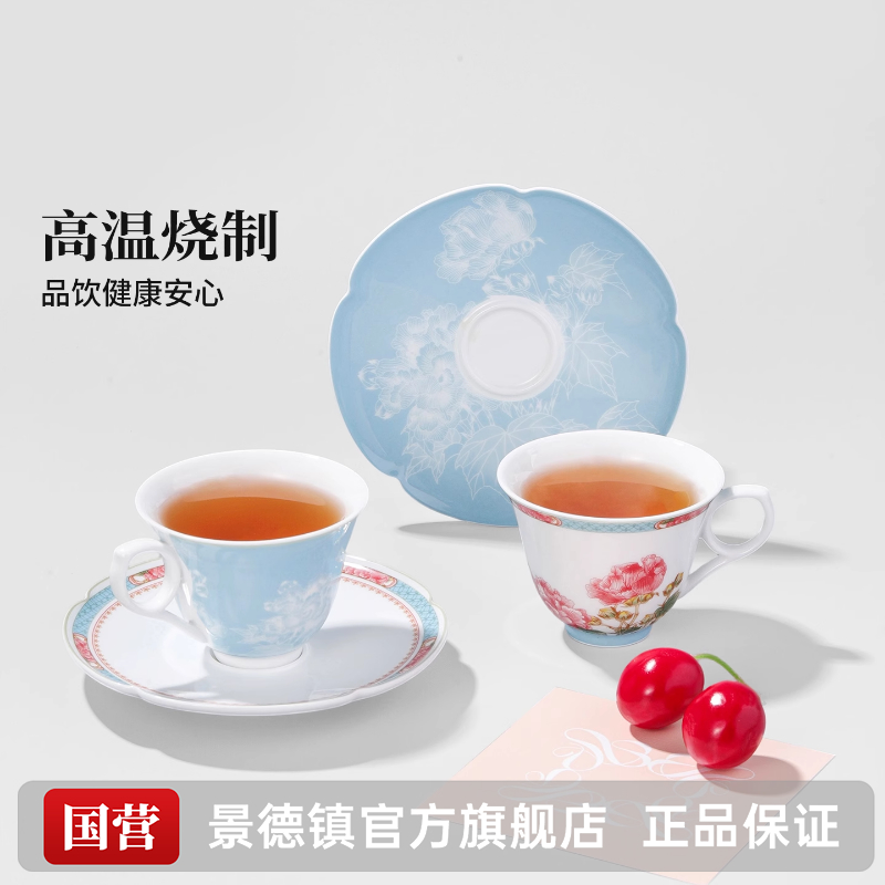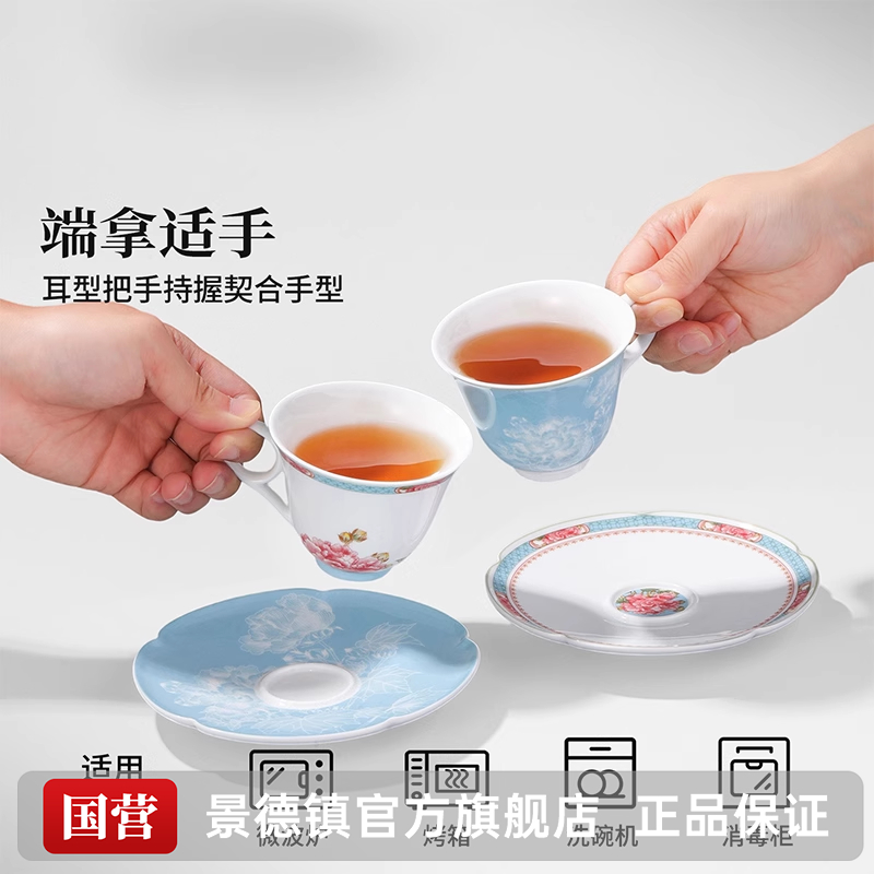 景德镇官方陶瓷中国色茶具咖啡杯碟套装精致马克杯情侣对杯结婚礼