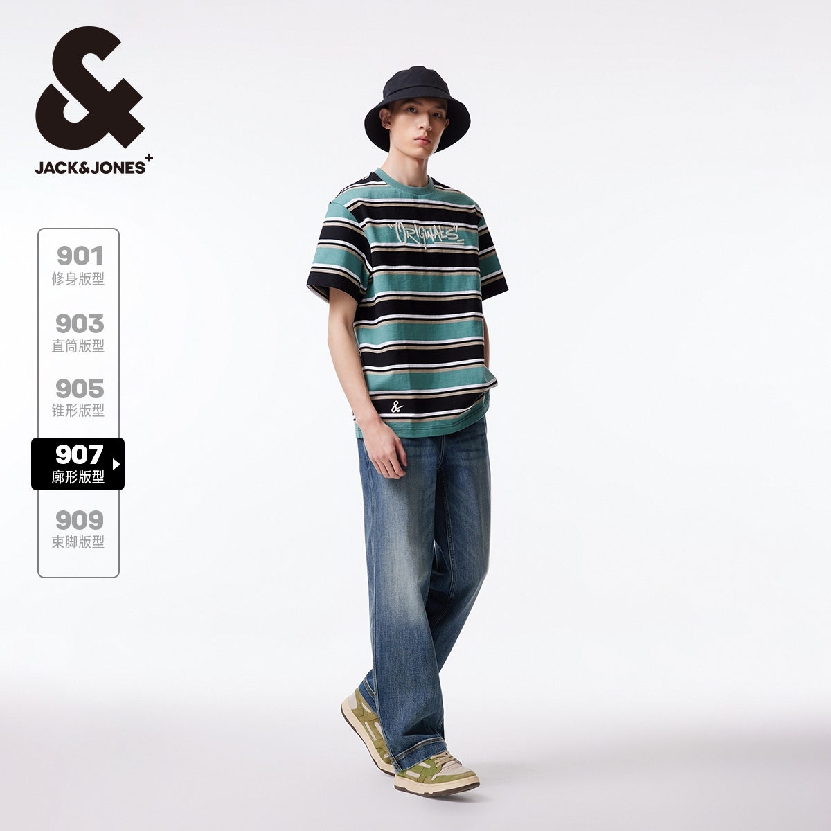 杰克琼斯outlets春季潮休闲宽松做旧磨白水洗棉质长裤牛仔裤男装