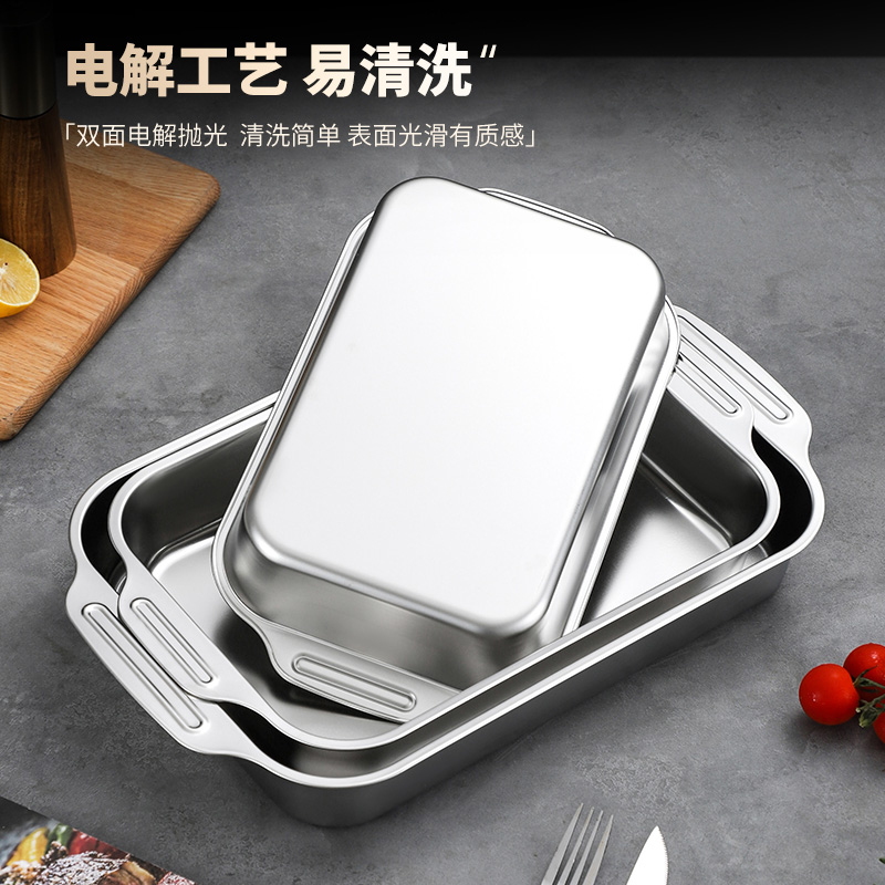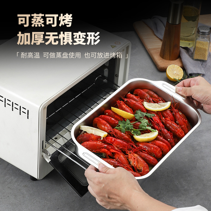 不锈钢专用烤鱼盘长方形家用健康食品级电磁炉可明火加厚烤鱼盘子