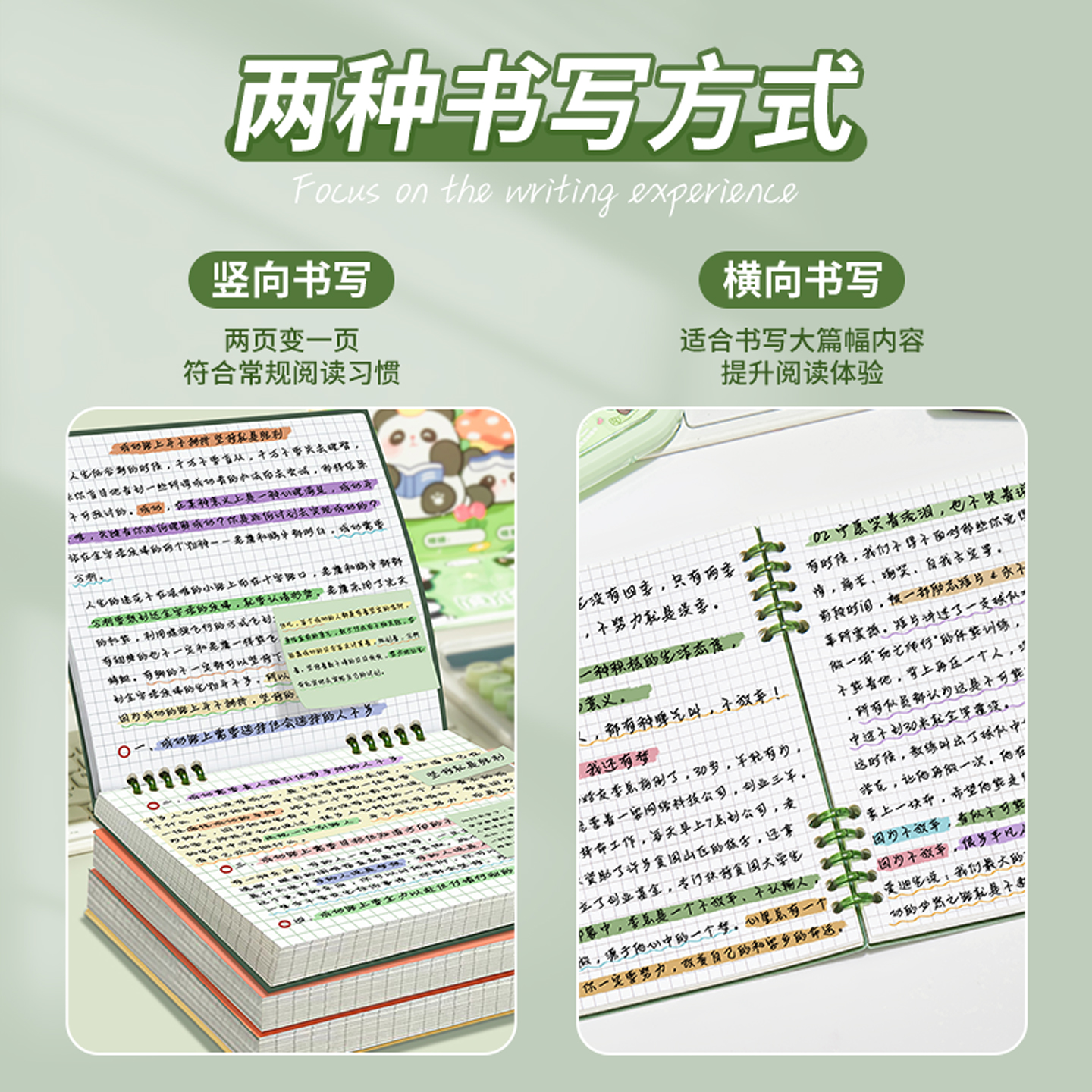 上翻活页笔记本可拆卸方格本网格本子高颜值初中生专用高中格子小方格方形本复古考研加厚2025新款文具草稿纸
