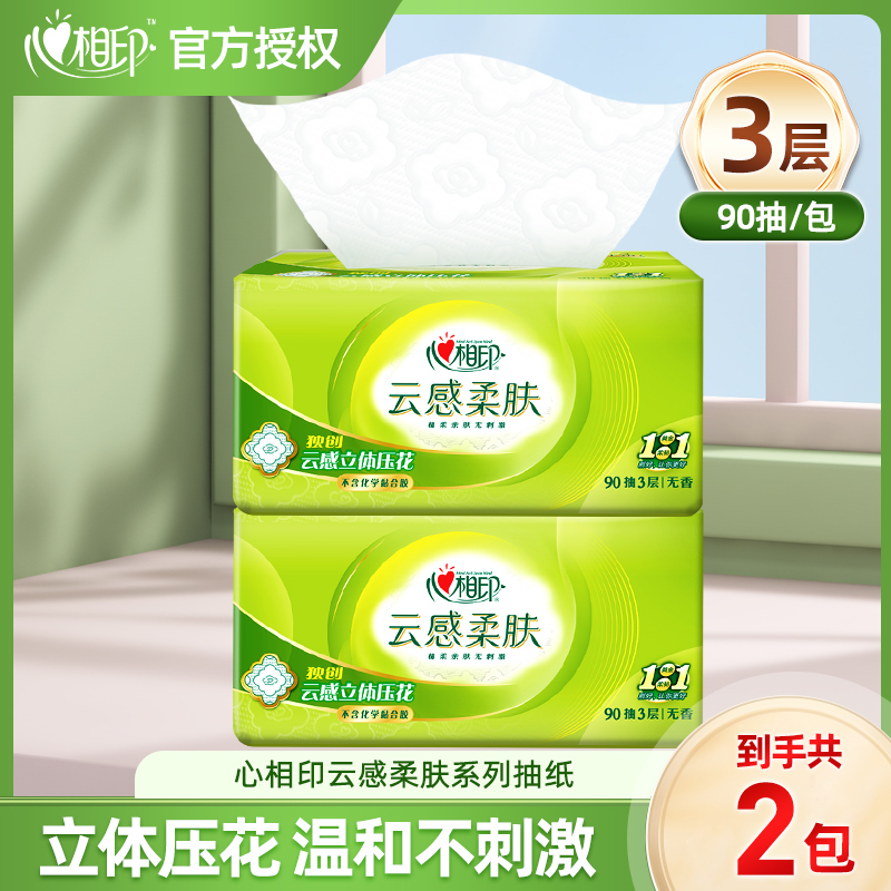 心相印抽纸云感柔肤卫生纸实惠装餐巾纸家用面巾纸擦手纸亲肤柔软