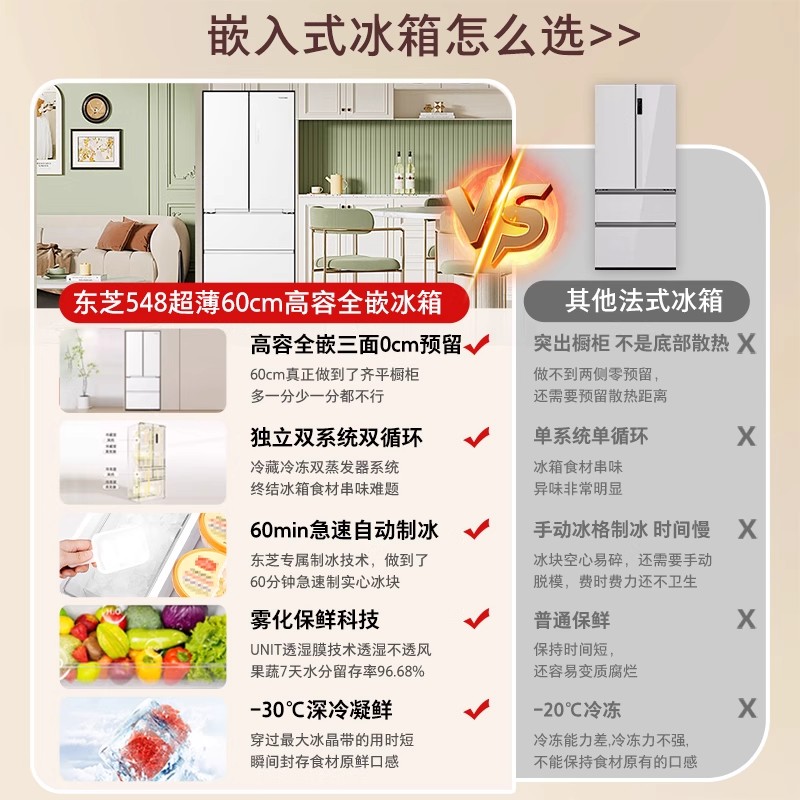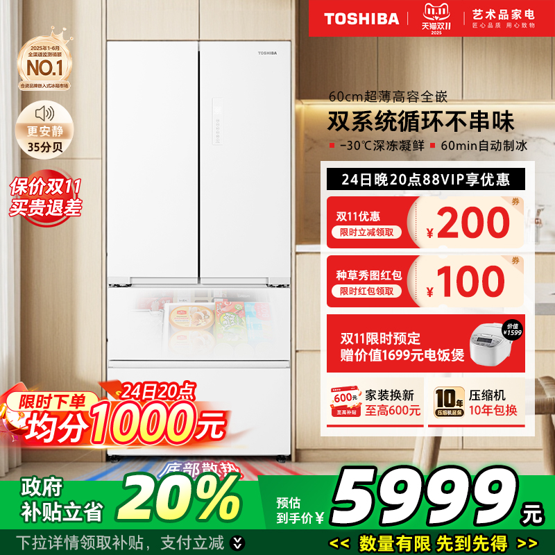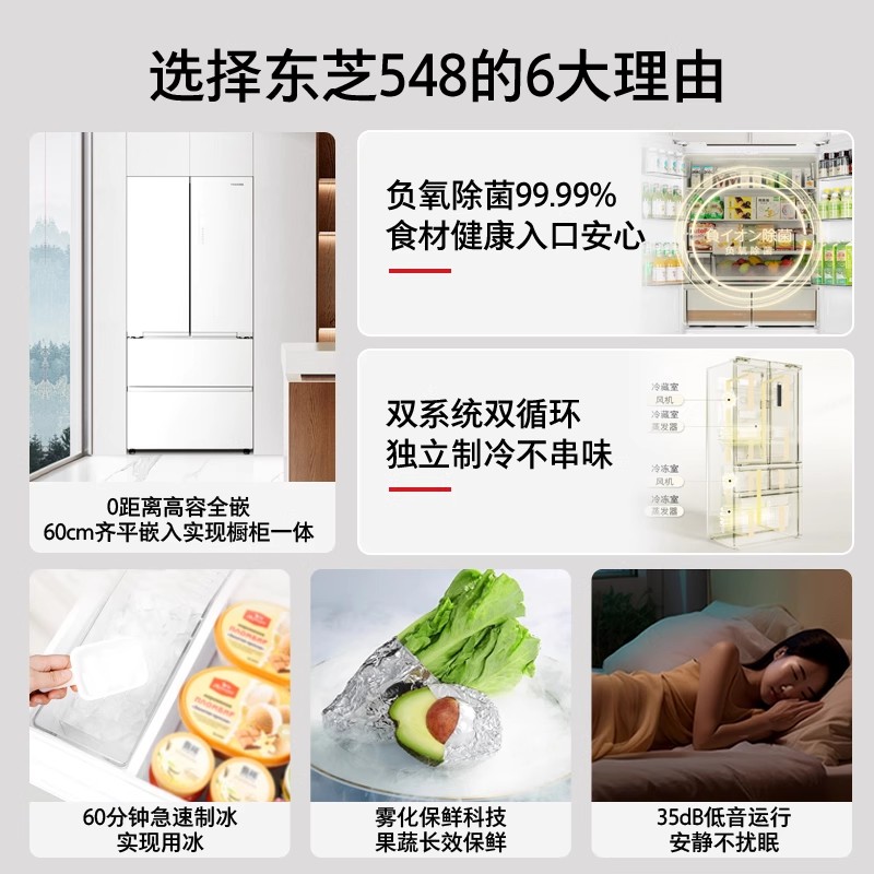 【以旧换新补贴】东芝白珍珠548超薄零嵌法式多门大容量家用冰箱
