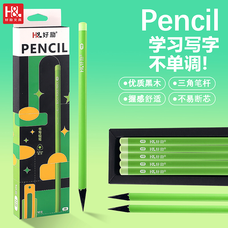 黑木铅笔小绿杆一二年级小学生专用初学者高端hb幼儿园2B铅笔加粗