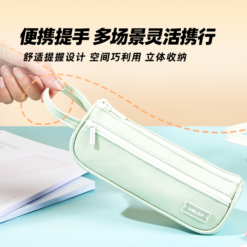 uslon尤斯隆若盐笔袋高颜值ins风大容量男孩女孩简约文具盒收纳袋便携手提2025新款双层一年级小学生专用笔袋