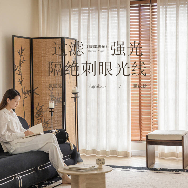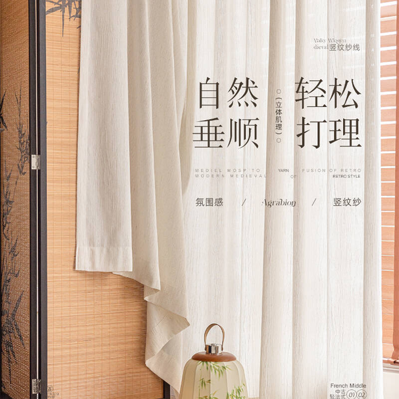 扶风纱帘透光不透人中古风亚麻纱窗帘卧室高级感客厅飘窗阳台遮阳