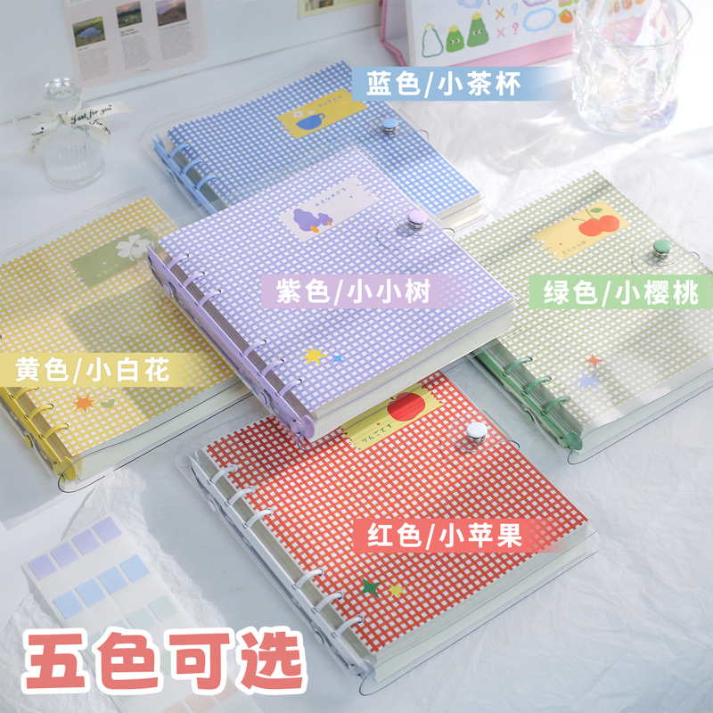 高颜值方形格纹活页本可拆卸扣环活页笔记本本子素描绘画空白本无线小红书同款日记本软皮外壳考研大学生专用