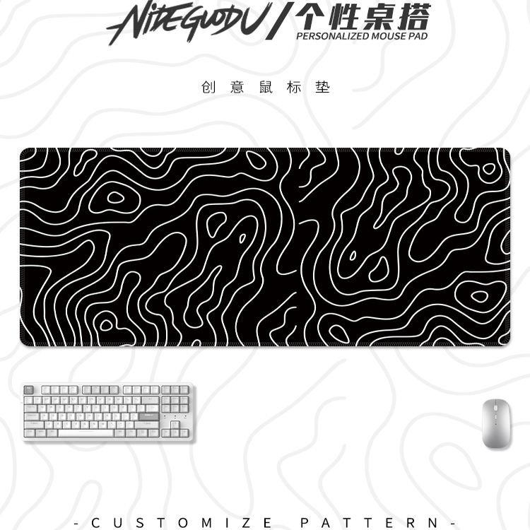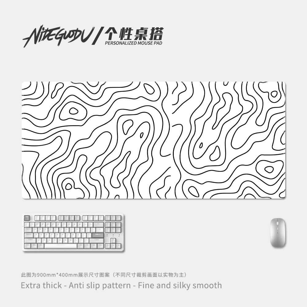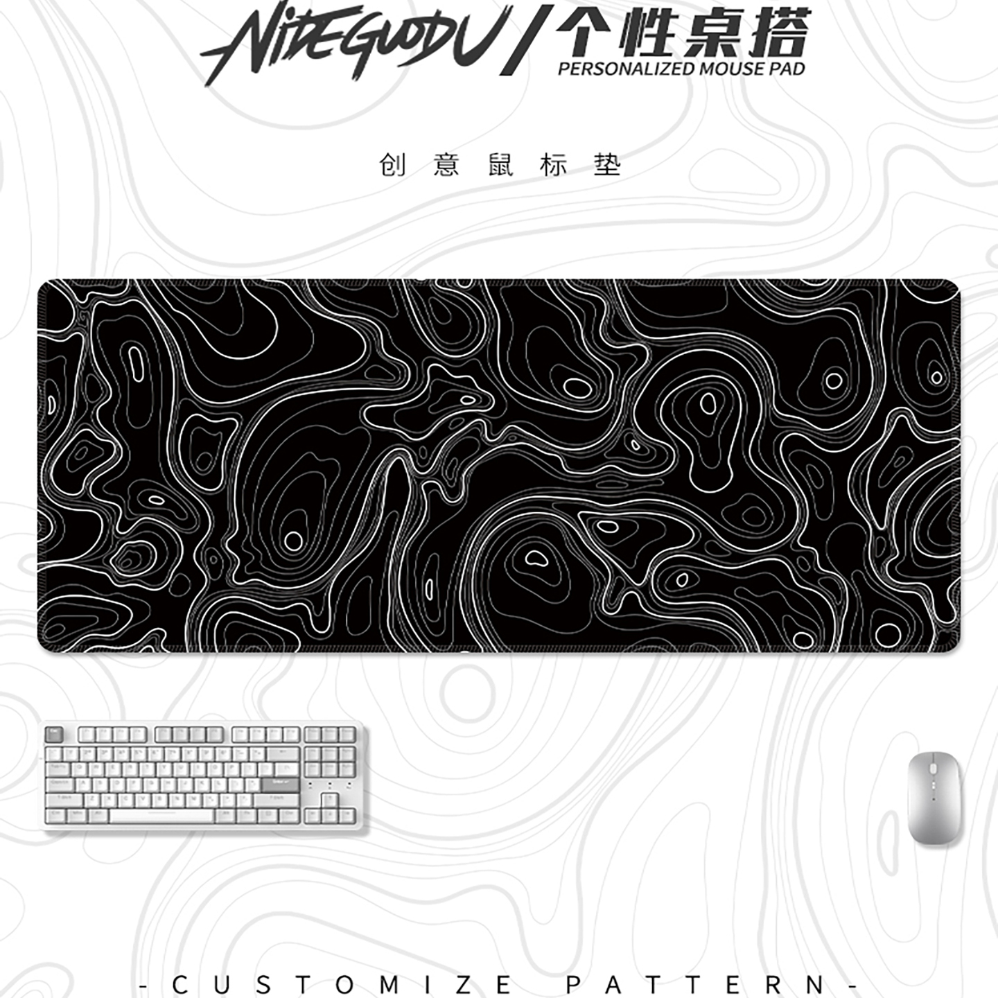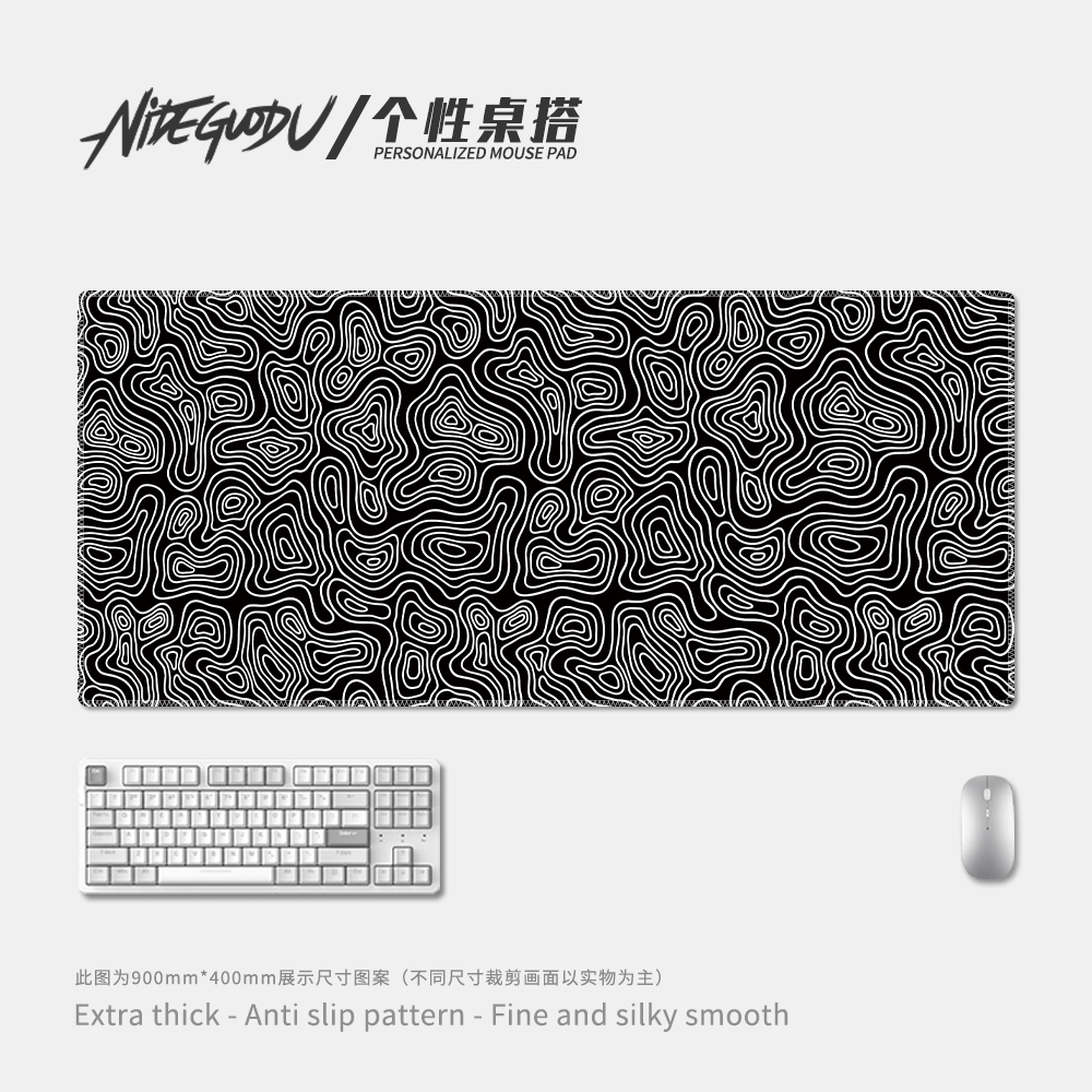 等高线鼠标垫超大号个性创意简约桌垫子极简风办公垫黑白线条纹理