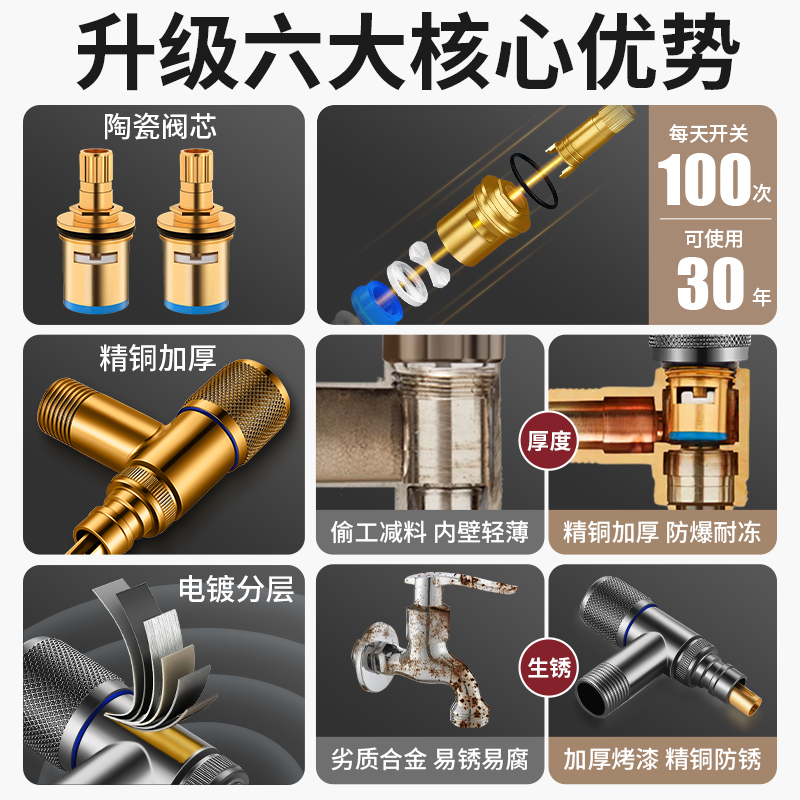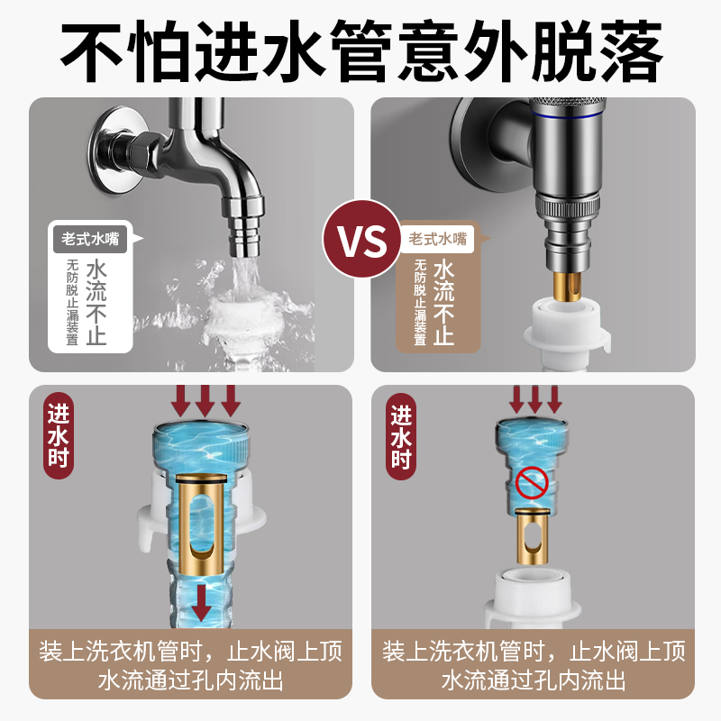 洗衣机水龙头全铜自动家用四分角阀大流量防脱落专用止水水嘴接头
