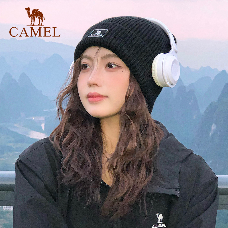 骆驼针织帽女秋冬季百搭保暖包头帽防风大头围白色冷帽男毛线帽子
