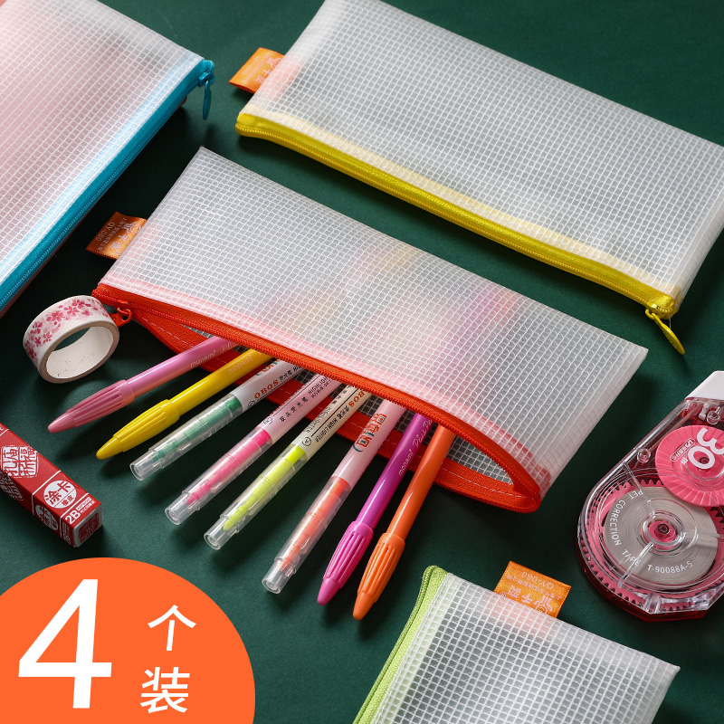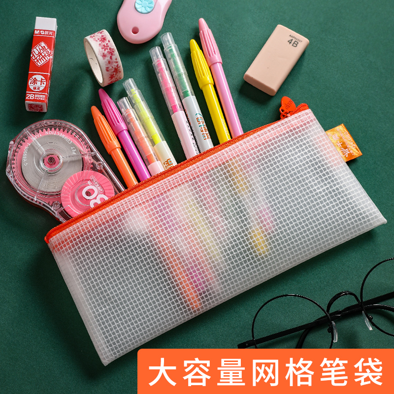 透明笔袋简约ins男女大容量网格网纱袋透明笔袋考试专用初高中生小清新铅笔袋可爱韩版少女心拉链文具袋笔盒