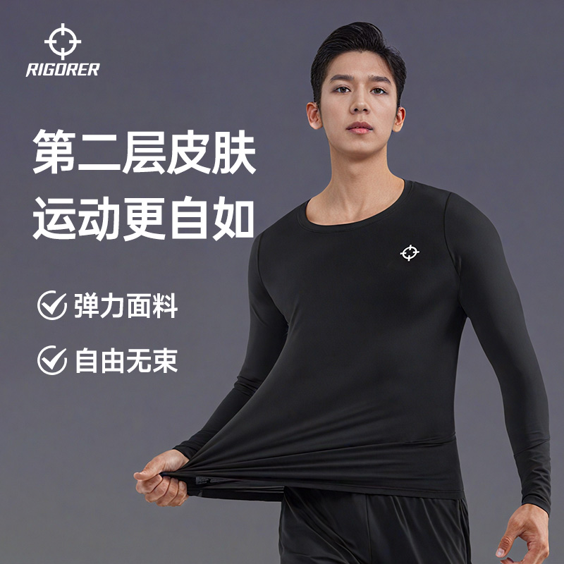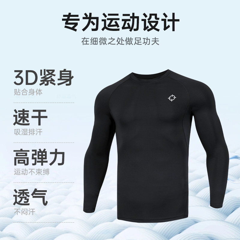 准者紧身衣长袖男秋冬加绒跑步训练健身套装运动高弹速干压缩上衣