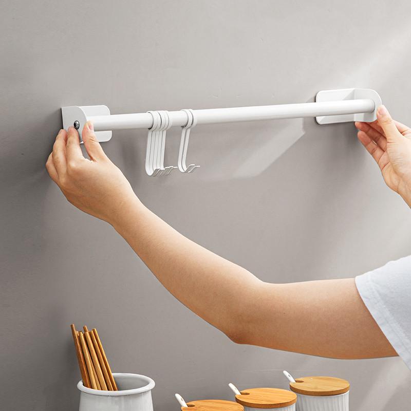 厨房挂钩架免打孔家用上墙壁挂杆多功能锅铲勺收纳挂架厨具置物架