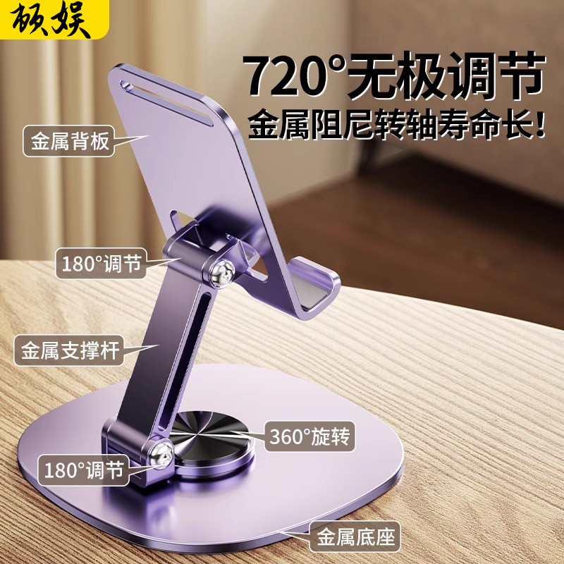 720°旋转手机支架桌面懒人平板电脑支撑架可旋转折叠手机架直播视频ipad支撑架子合金金属手机架支架便携
