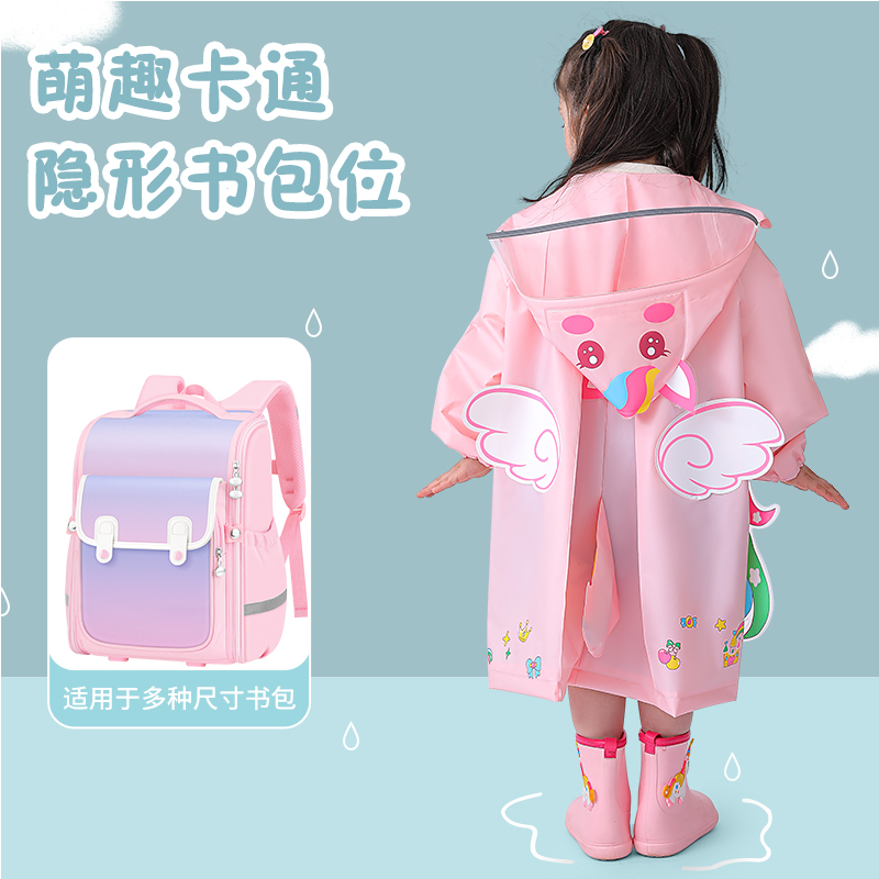 儿童雨衣女童男童一年级小学生小孩带书包位上学专用防雨服雨披