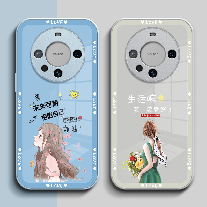 适用华为Mate60手机壳BRA-AL00玻璃壳Hwmαte60女款化为Mate6o硬壳保护套钢化玻璃壳奢华高级感