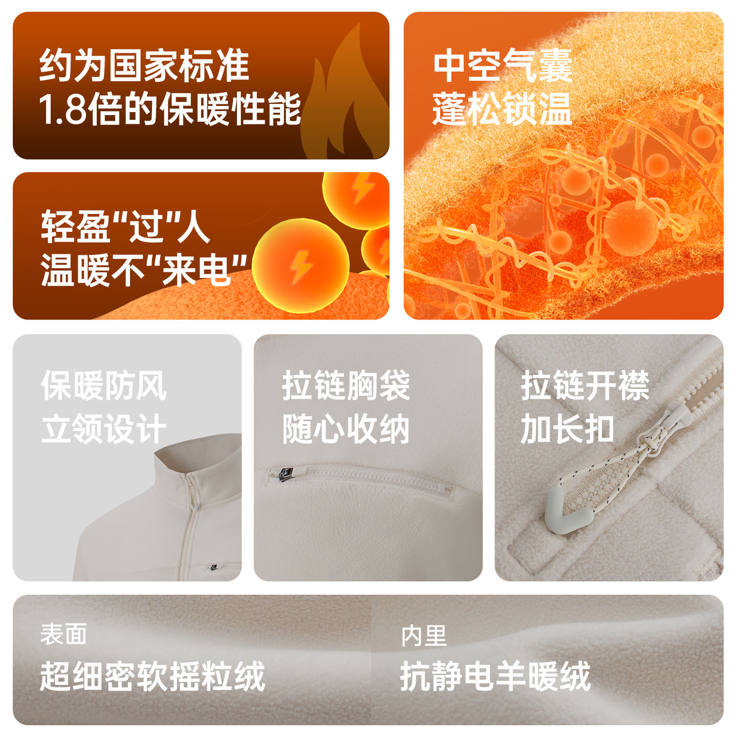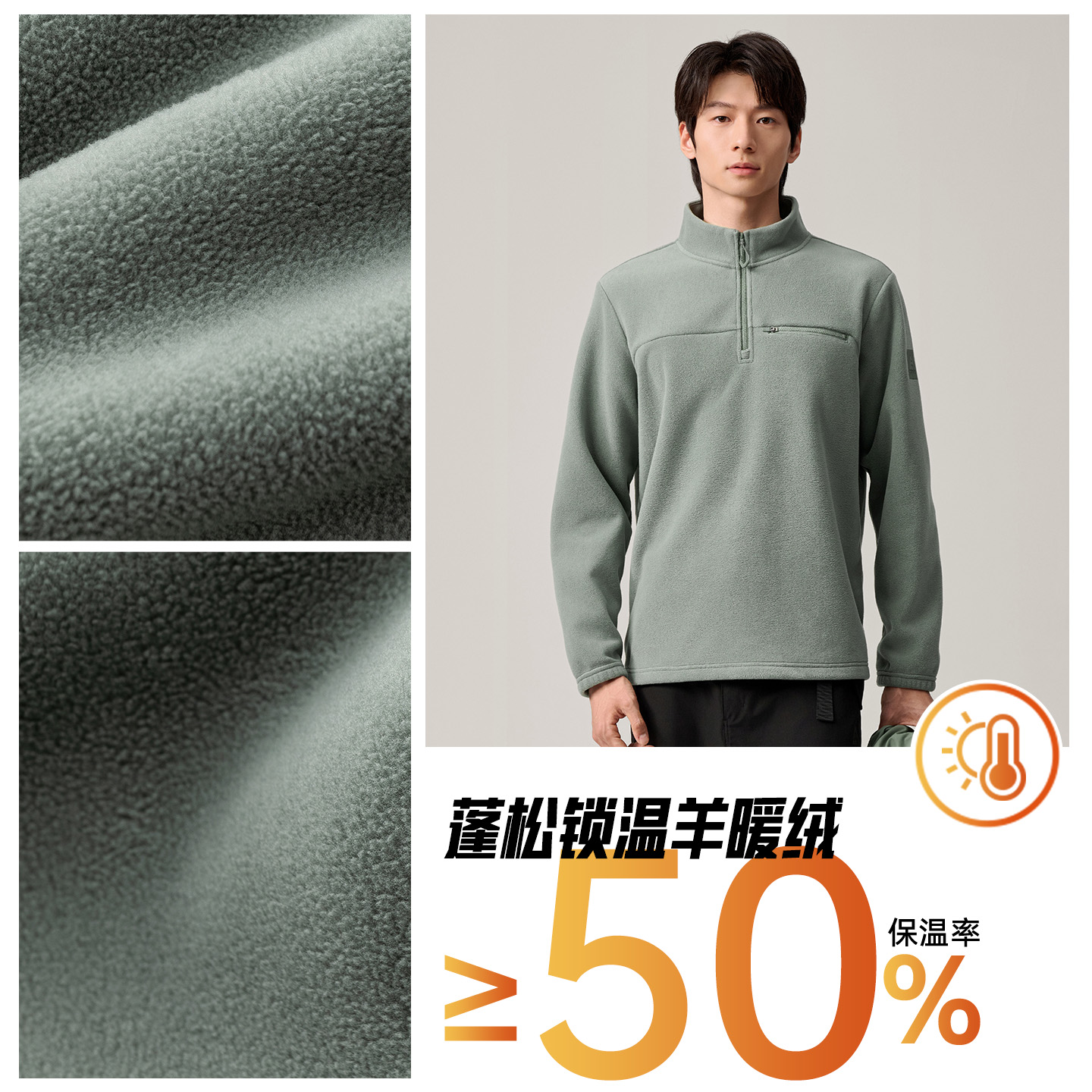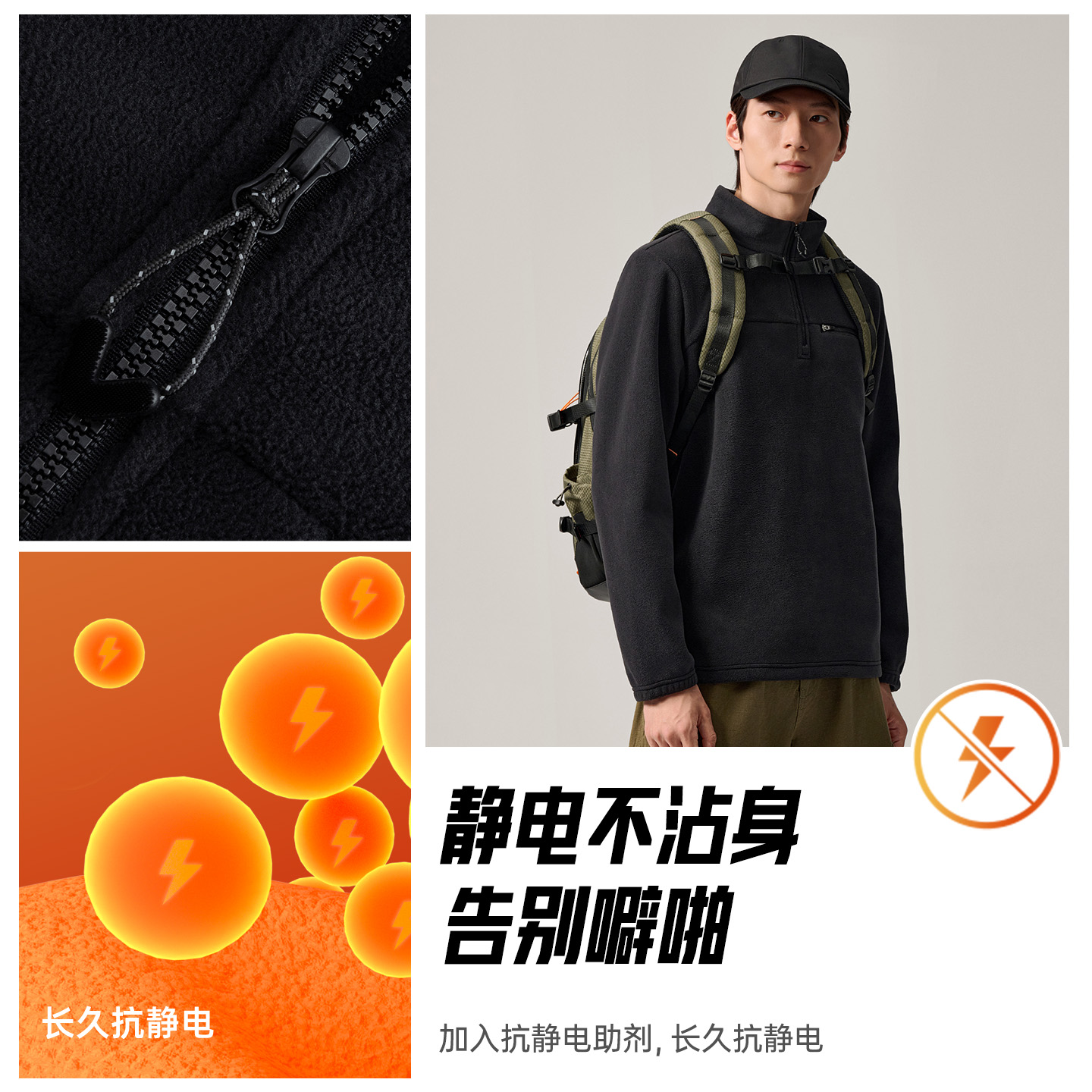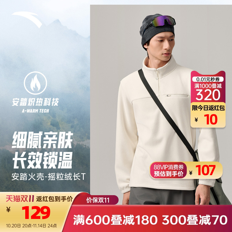 安踏火壳丨大地之壳摇粒绒户外长袖t恤男子半拉链立领打底抓绒衣