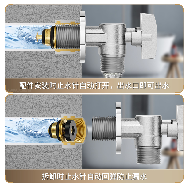 郎奇黄铜免生料带止水阀角阀水龙头自动止水防漏水免关开关防爆