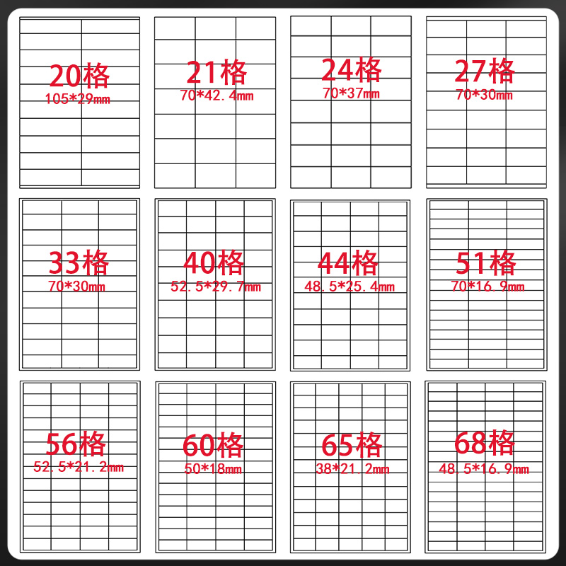 a4内切不干胶标签打印纸亮光哑面空白书写纸自粘标签纸不易留胶背胶纸喷墨激光条码打印纸内分切广告贴可定制