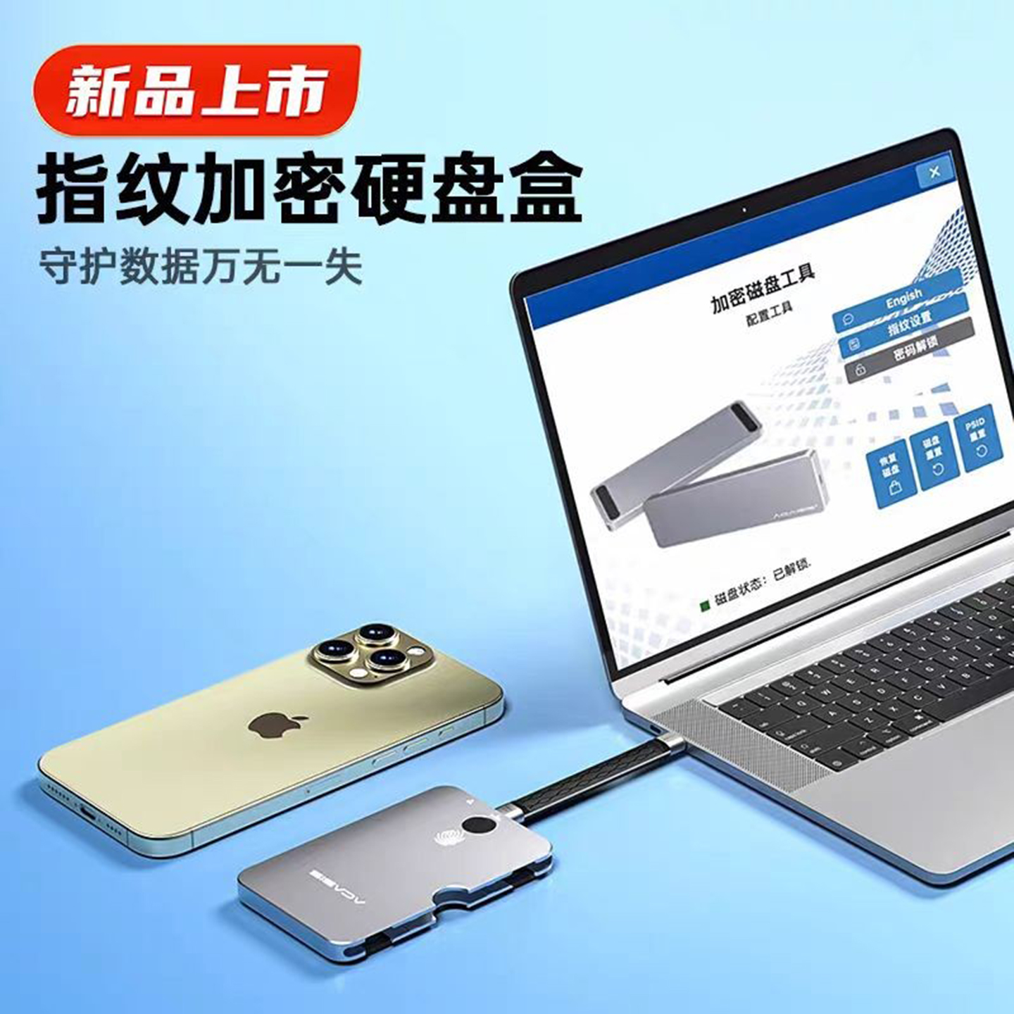 阿卡西斯M.2指纹加密磁吸硬盘盒子2280Nvme平板手机外接移动存储