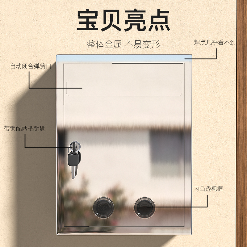大号不锈钢意见箱户外信报箱邮箱带锁举报箱A4投票箱选举箱功德箱室外挂墙防水定制文字小号创意可爱建议箱