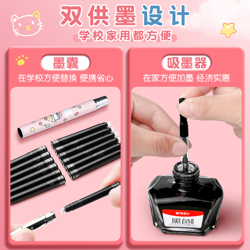 晨光钢笔小学生专用三年级女生高颜值学生可擦正姿练字暗尖0.38刚笔墨囊可替换儿童二升三四年级初学者书写用