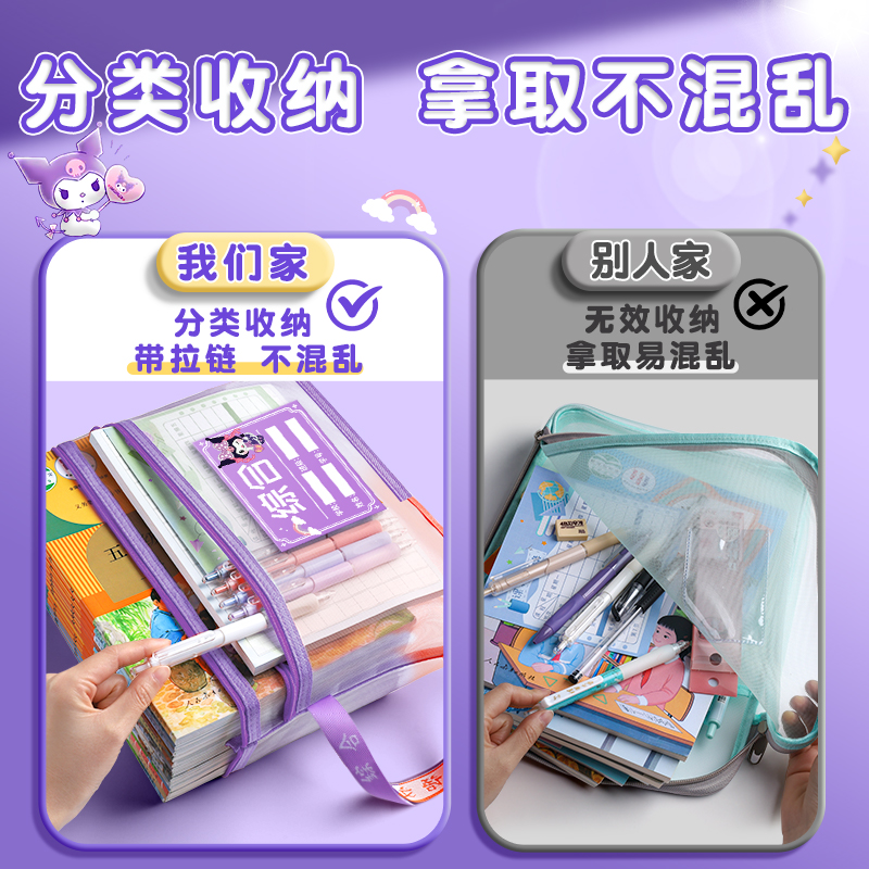科目分类袋文件袋小学生科目袋语文数学英语分类学科收纳袋一年级书本课本试卷收纳袋拉链式学习作业书袋手提