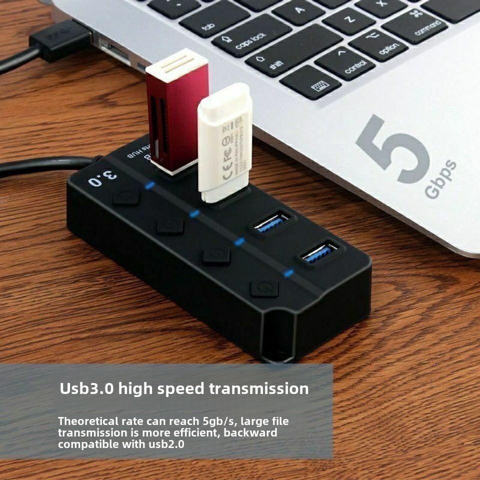 扩展坞usb3.0高速多接口转换器hub集线器拓展器一拖四7口独立开关