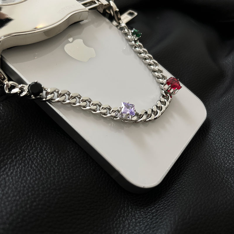 YUYOLSH!时髦扭曲波浪金属链条手机夹适用于手机壳斜挎长挂链潮