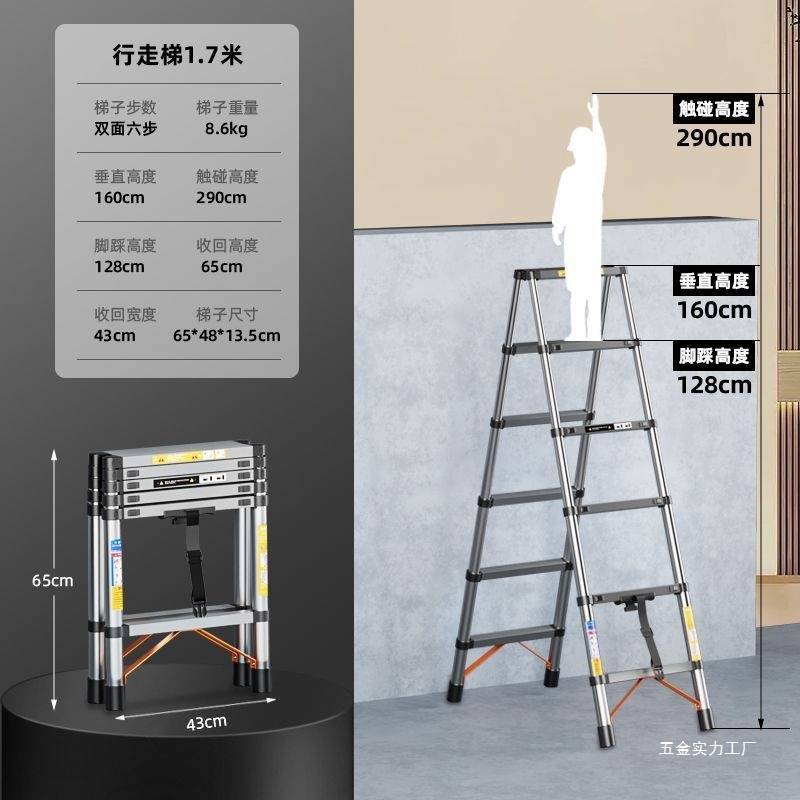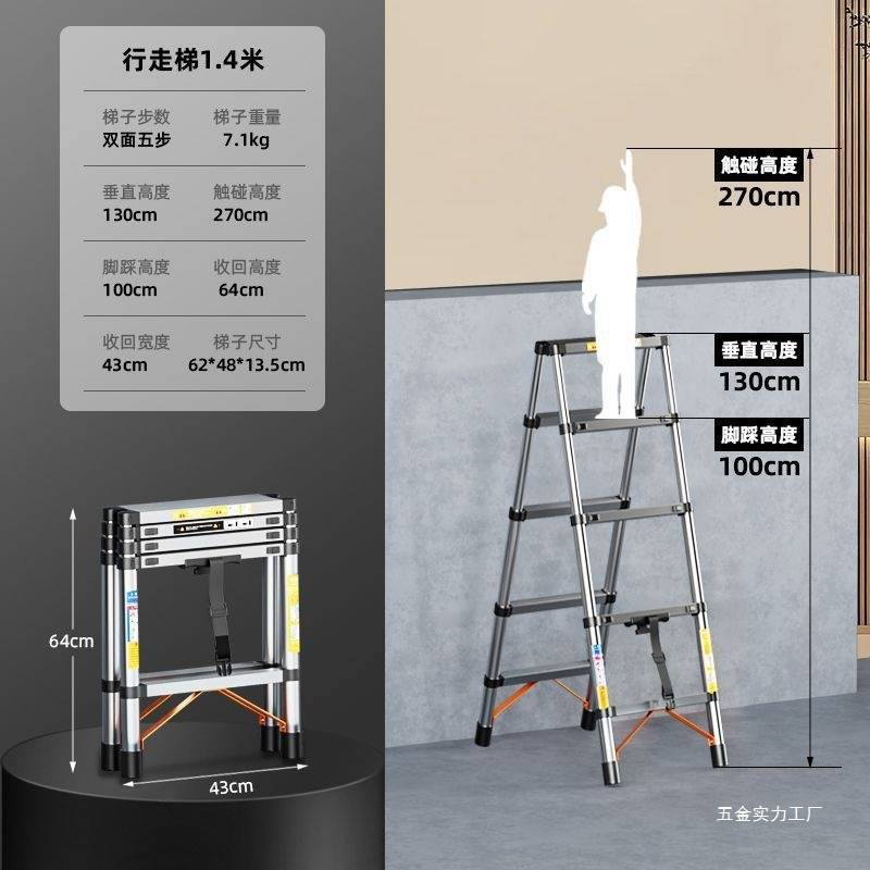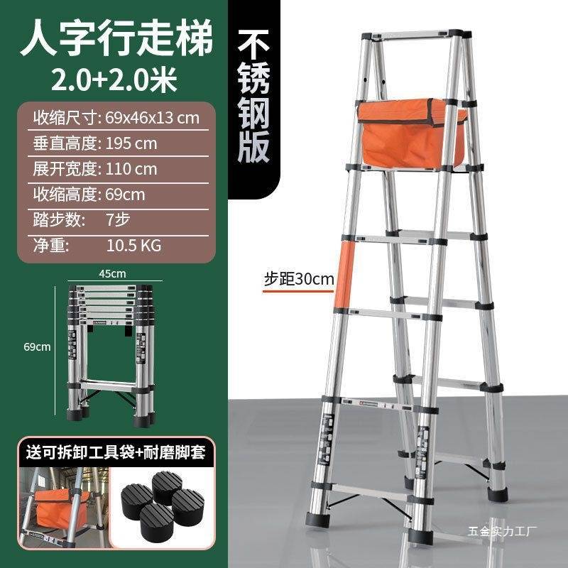 不锈钢行走梯家装人字梯加厚伸缩不锈钢家用伸缩竹节升降梯便携梯
