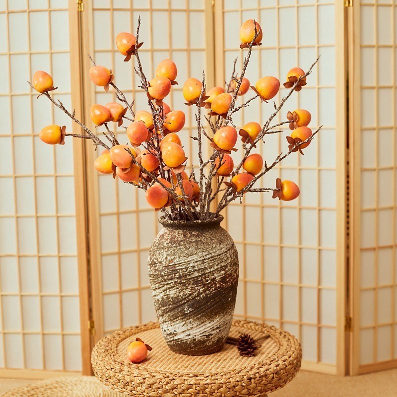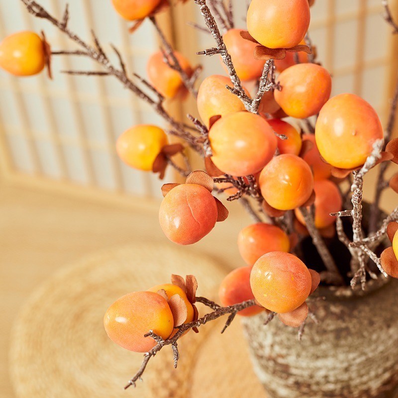 仿真浆果假柿子果实树枝塑料花家居客厅装饰品摆件软装假柿子果