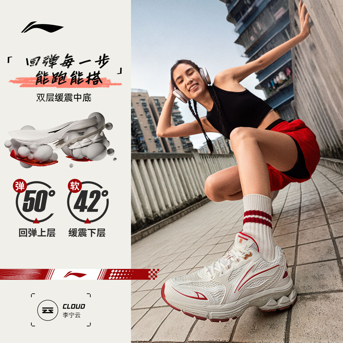 李宁扶摇2.0丨 跑步鞋女款复古潮流休闲百搭健身慢跑老爹鞋运动鞋