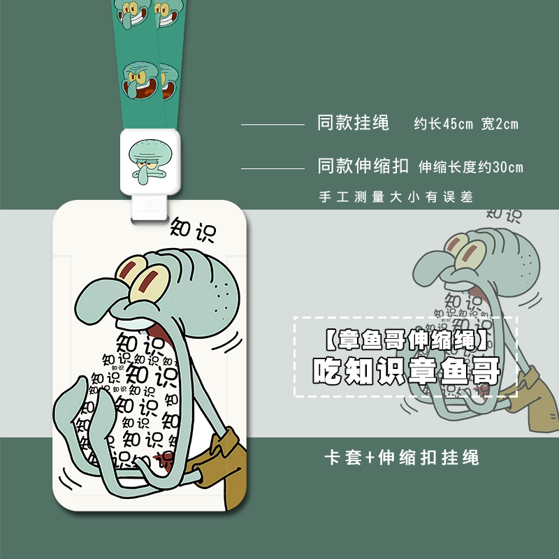 可爱搞怪知识分子章鱼哥校园卡套情侣闺蜜透明弹簧绳钥匙链可刷卡套饭卡保护壳公交门禁地铁水卡一卡通保护壳